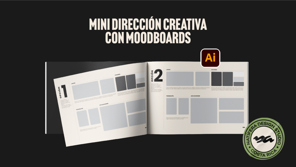 ¿Te ha pasado que entregás una propuesta de diseño y el cliente tenía en mente algo totalmente diferente? Es frustrante, pero hay una forma de evitarlo: una etapa previa de dirección creativa. Esta plantilla de Mini Dirección Creativa en Adobe Illustrator está diseñada para ayudarte a presentar dos opciones de moodboard al cliente, antes de comenzar a diseñar. Esta etapa es clave porque permite reducir y enfocar las opciones de inspiración, cerrando la ventana de posibilidades y asegurándote de estar en la misma página con el cliente.
